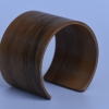 The bracelet is made with raw (real) wood veneer approximately 1/42 of an inch thick. Several layers of veneer are steam bent then glued to form an elegant curved shape that is sturdy. It is sanded smooth then finished with an oil-based satin varnish.